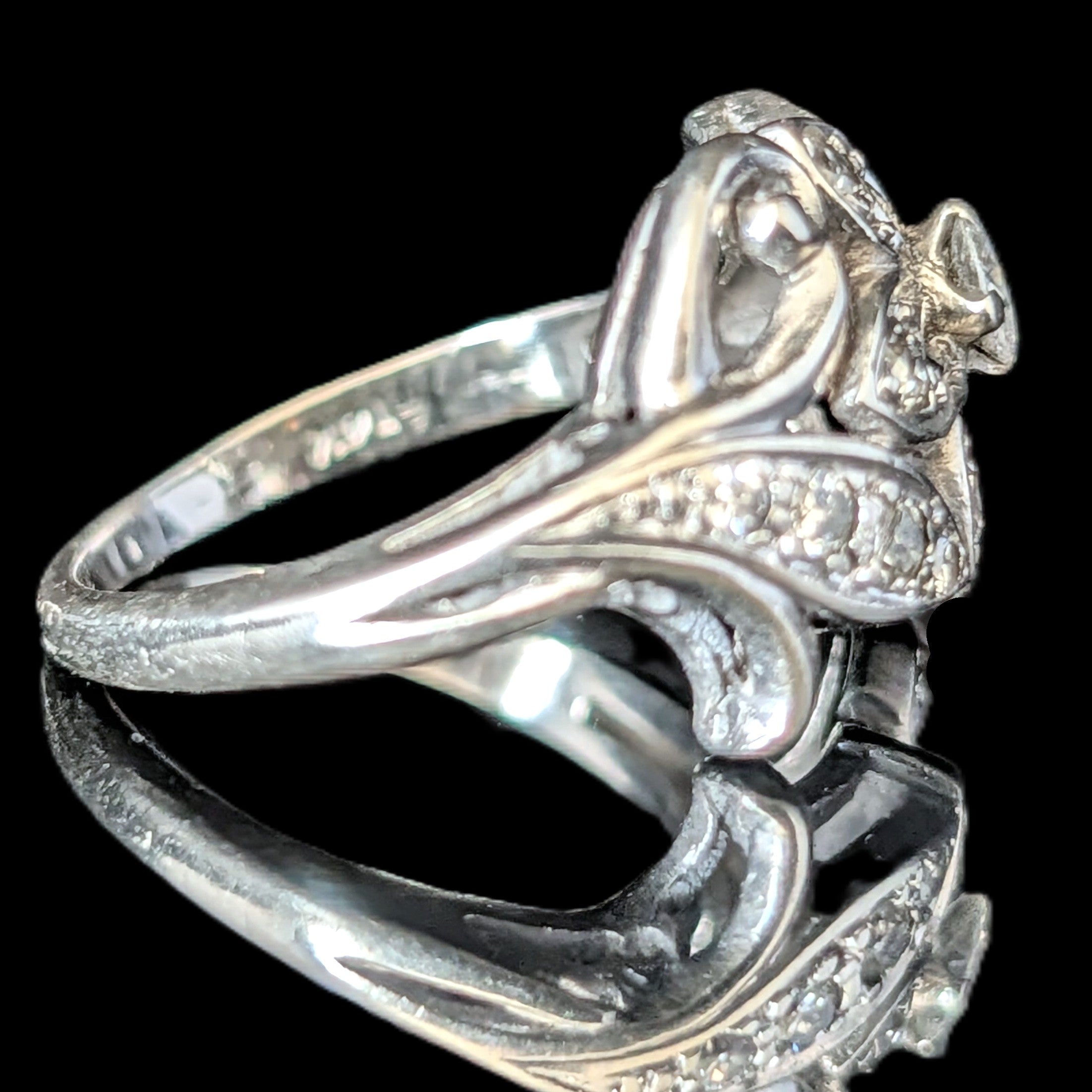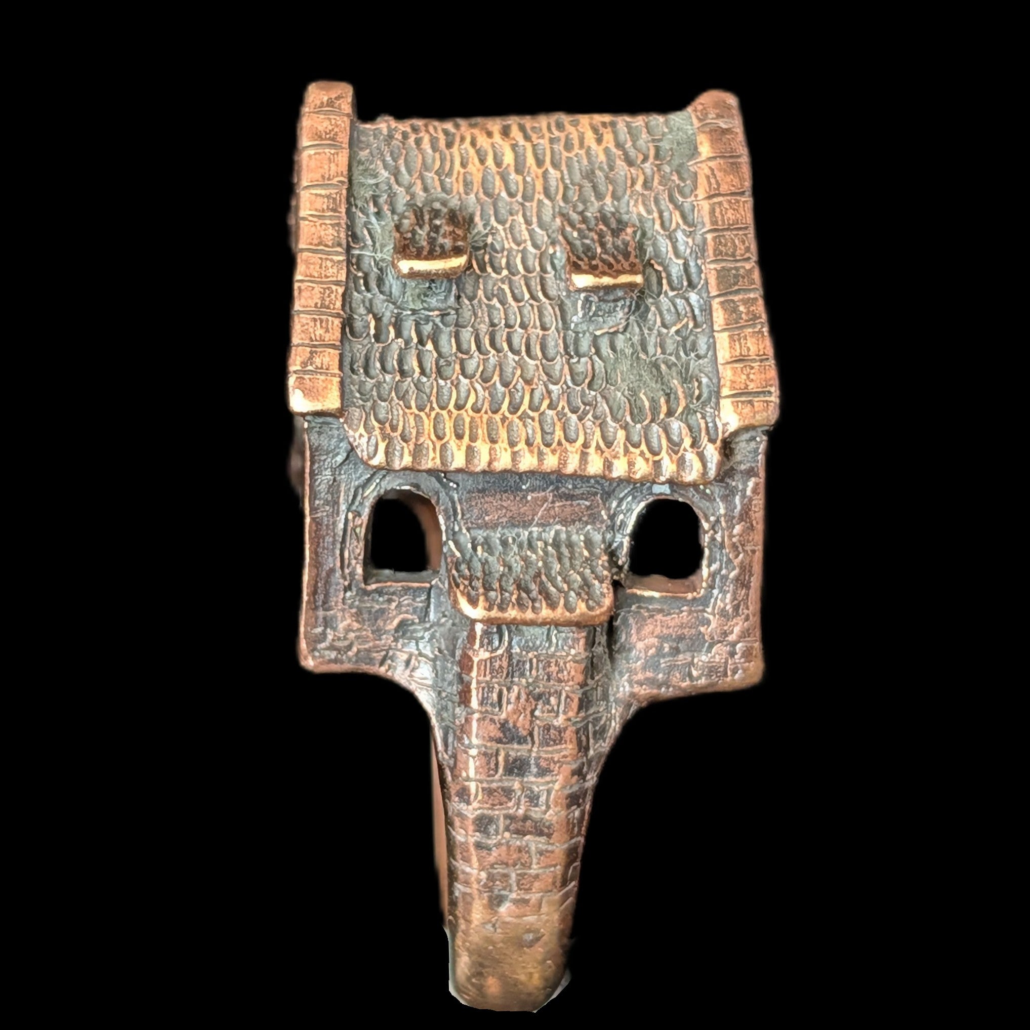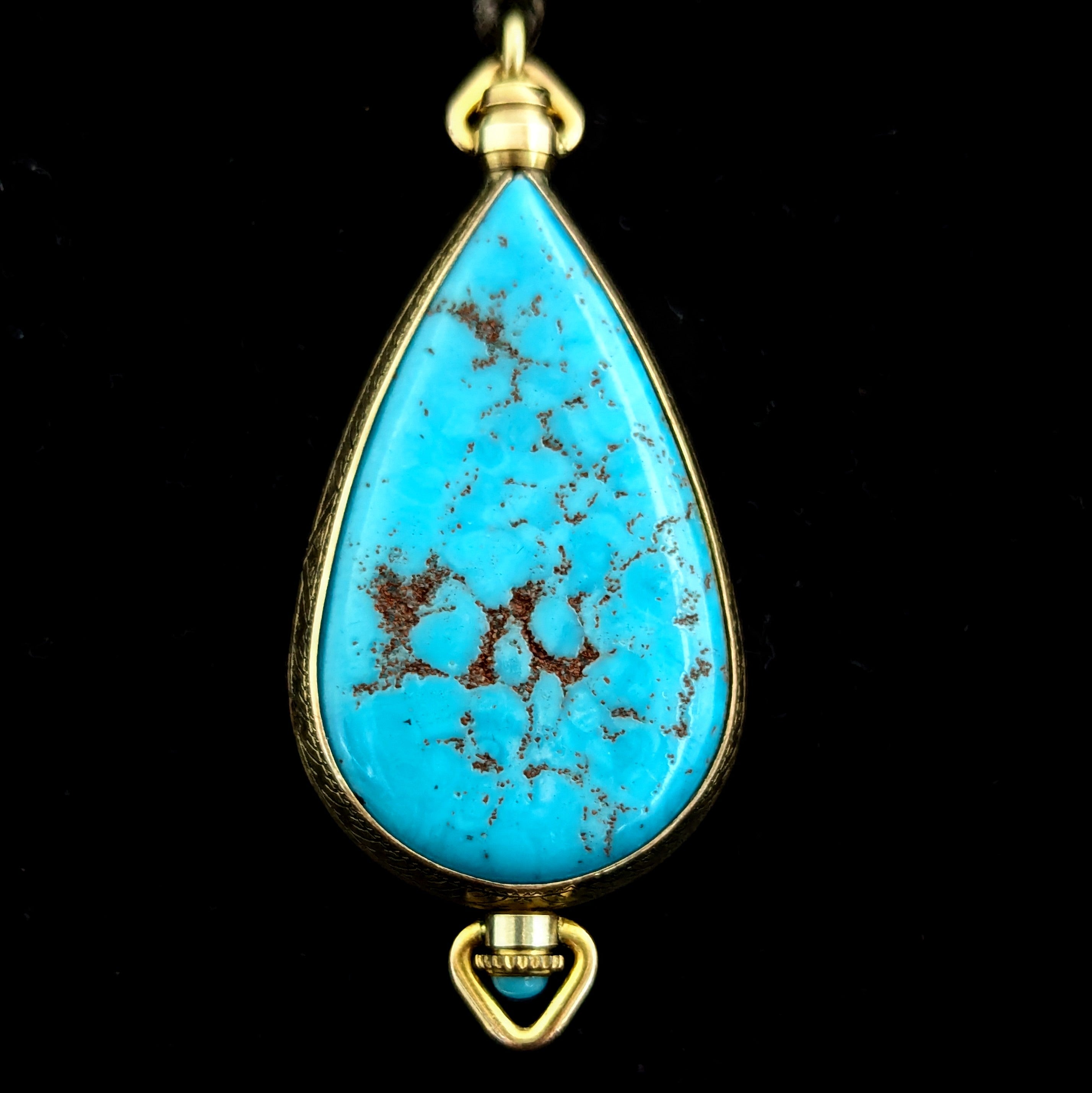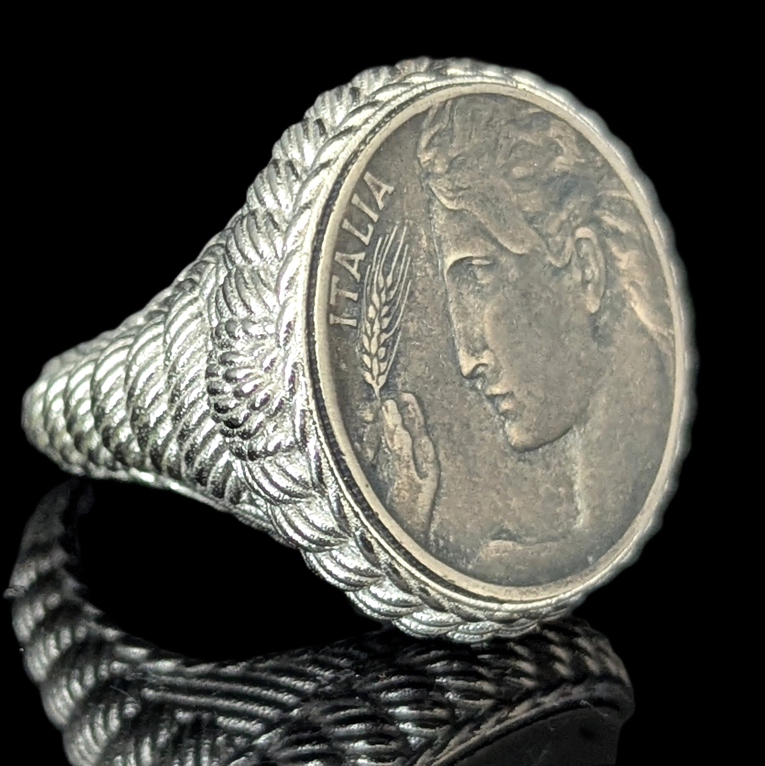 This 1920s Art Deco ring is remarkable for capturing the fleeting moment when Egyptian Revival briefly swept through Art Deco jewelry after the 1922 discovery of Tutankhamun’s tomb. Unlike the broader Deco style, which endured for decades, Egyptian motifs flourished for only a few years, making authentic examples inherently rare. A turquoise cabochon, full of character, is framed by sculptural pharaoh profiles and lotus blossoms, all rendered in 14k white gold with an unusual degree of detail. It is a jewel that carries the sophistication of the Art Deco era while echoing the timeless power of the pharaohs