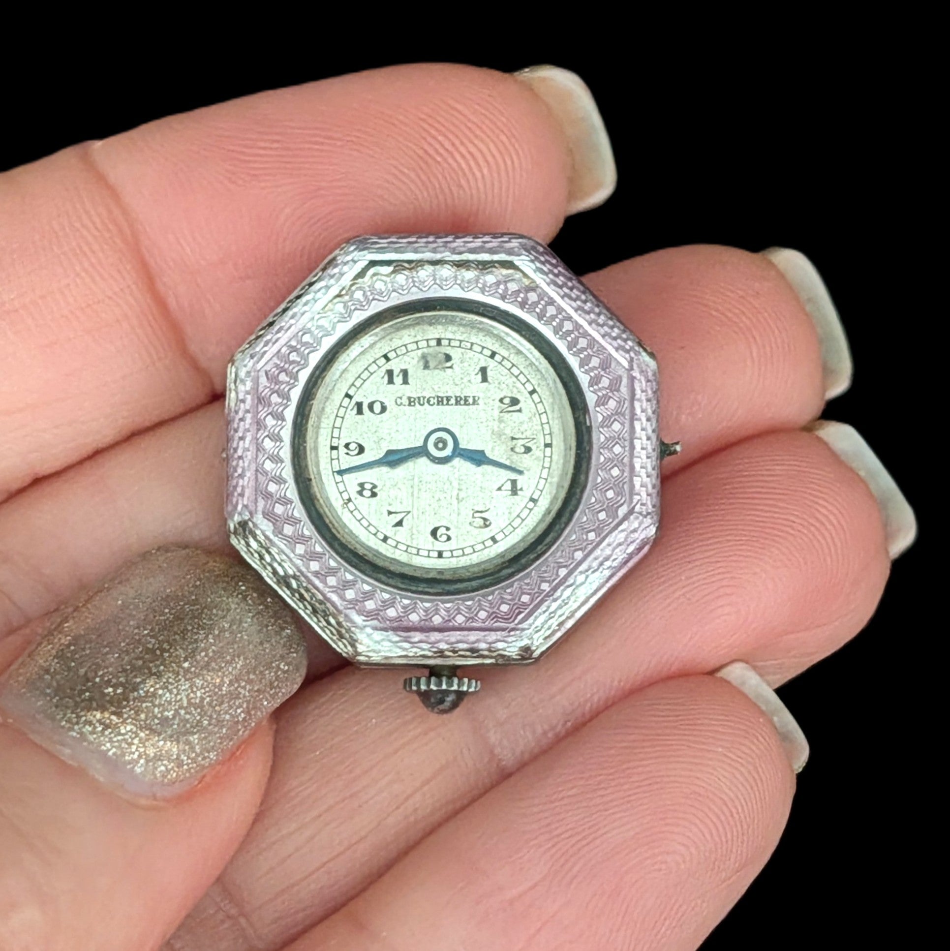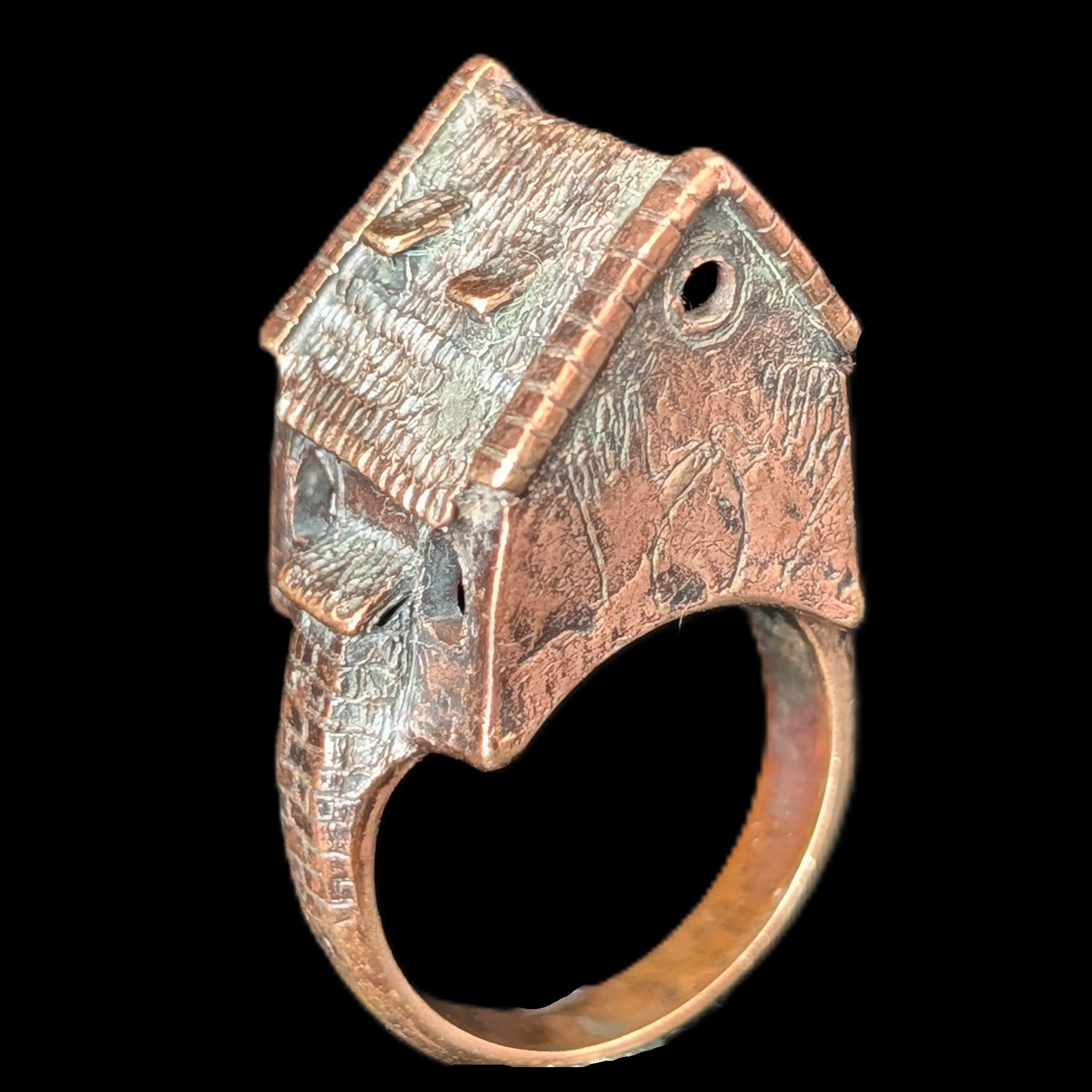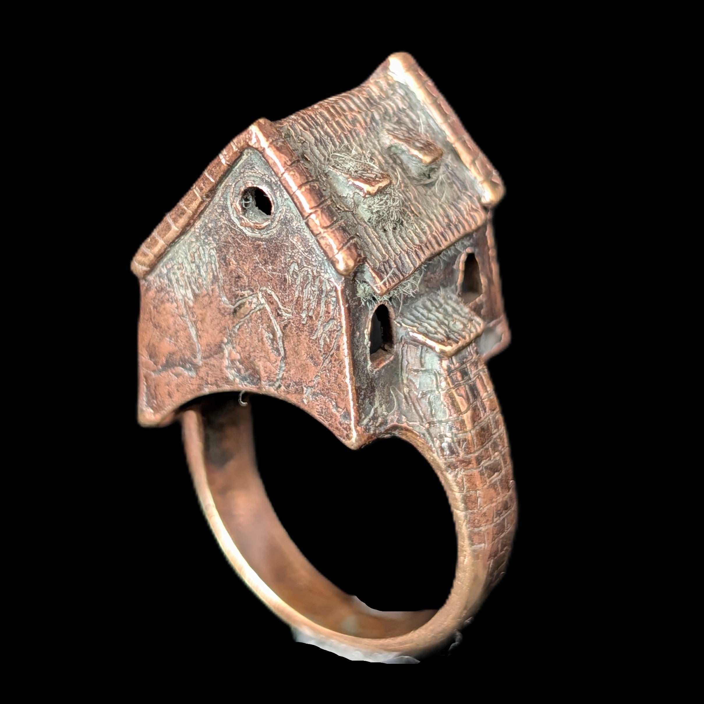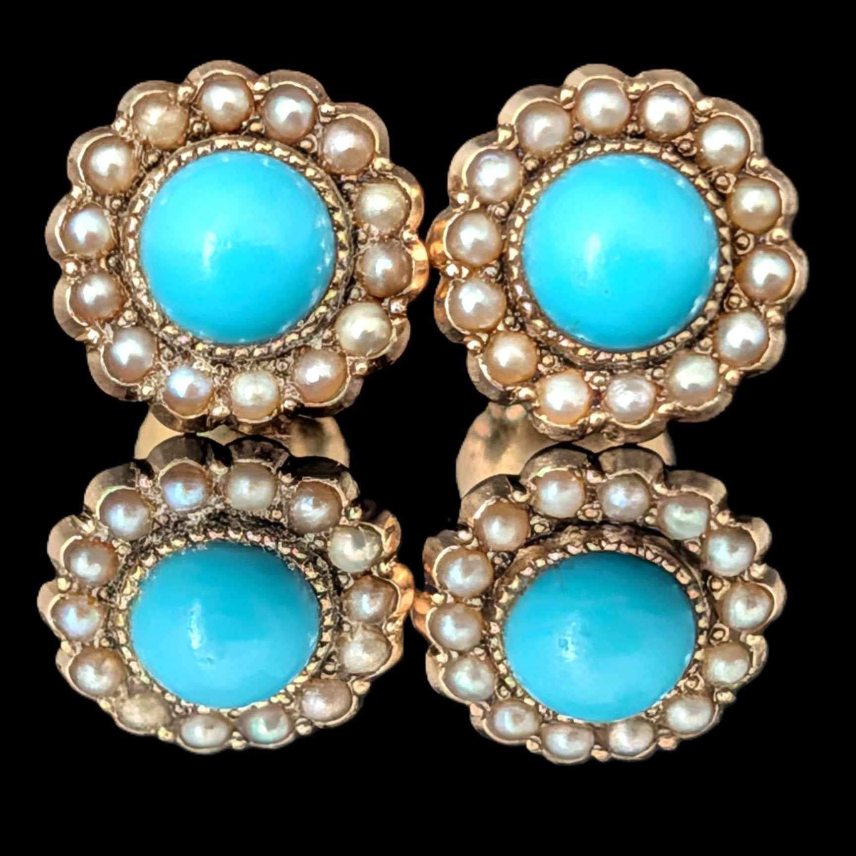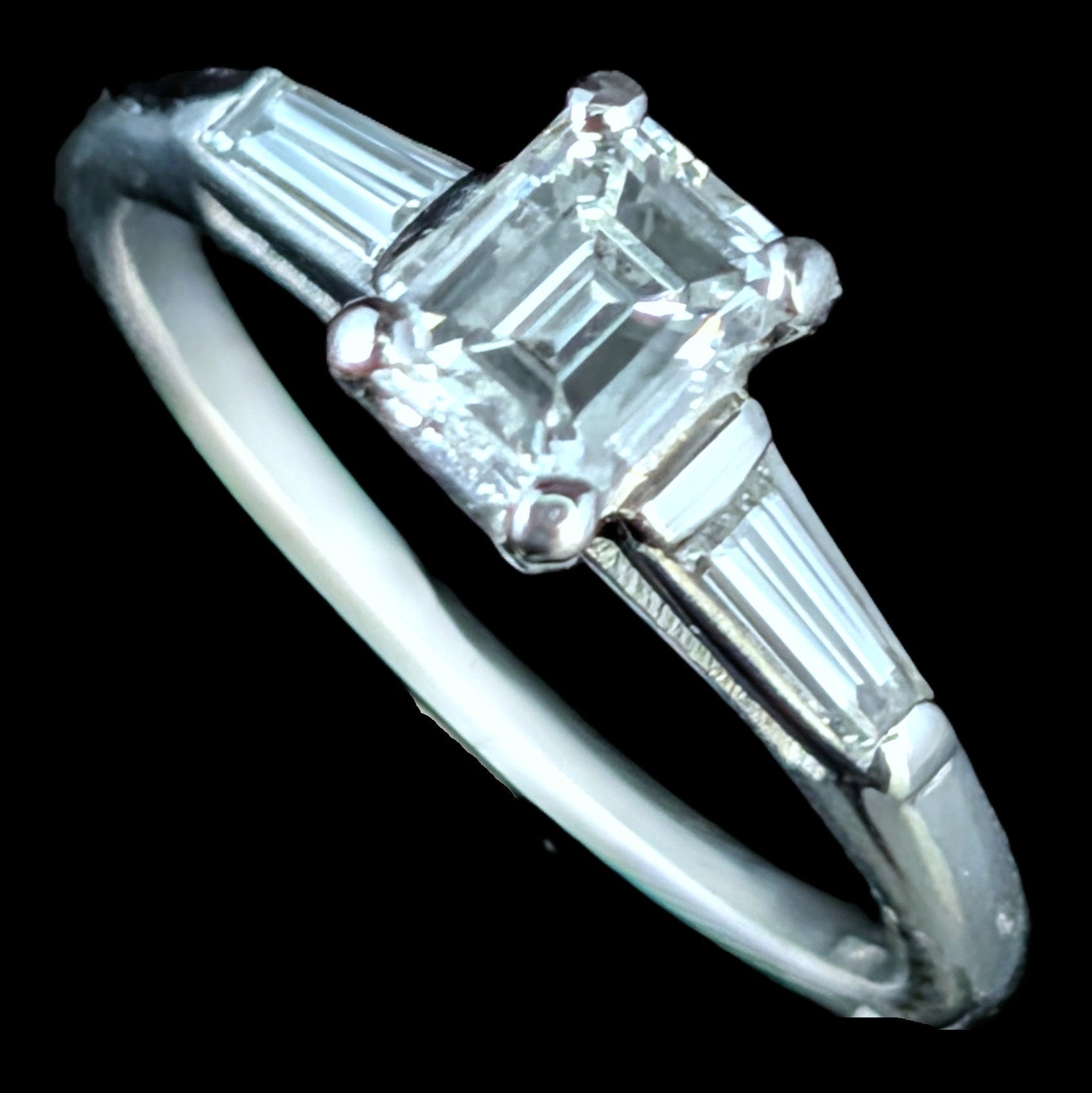 This 1920s Art Deco ring is remarkable for capturing the fleeting moment when Egyptian Revival briefly swept through Art Deco jewelry after the 1922 discovery of Tutankhamun’s tomb. Unlike the broader Deco style, which endured for decades, Egyptian motifs flourished for only a few years, making authentic examples inherently rare. A turquoise cabochon, full of character, is framed by sculptural pharaoh profiles and lotus blossoms, all rendered in 14k white gold with an unusual degree of detail. It is a jewel that carries the sophistication of the Art Deco era while echoing the timeless power of the pharaohs