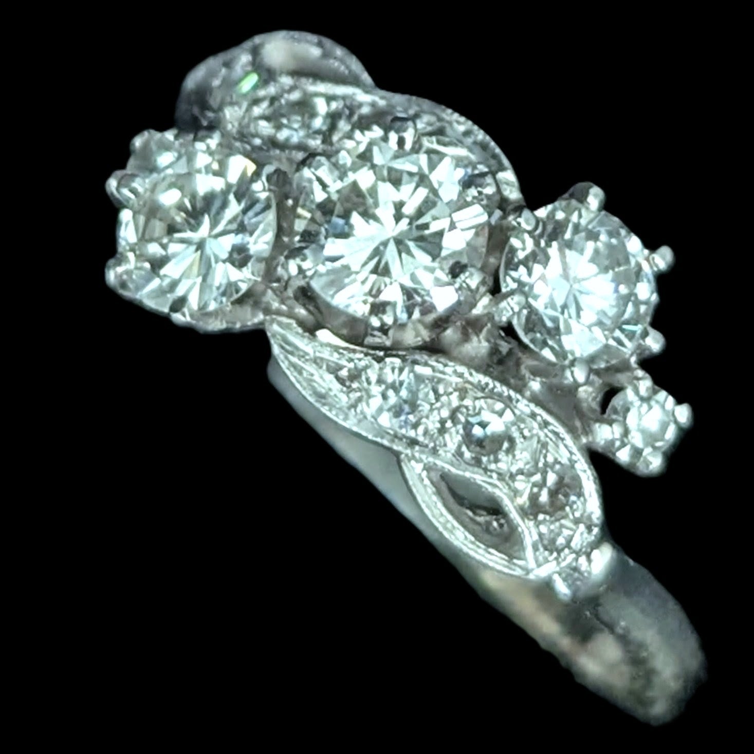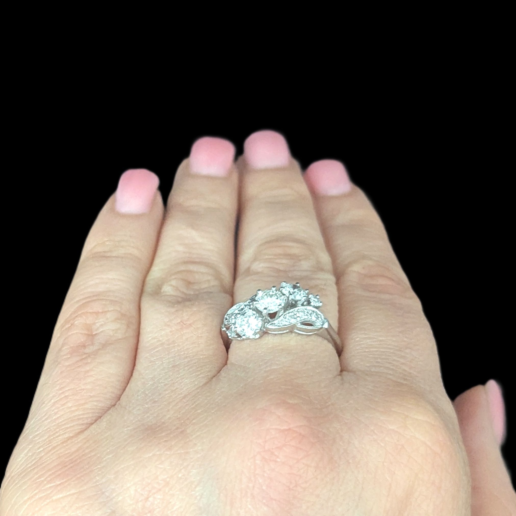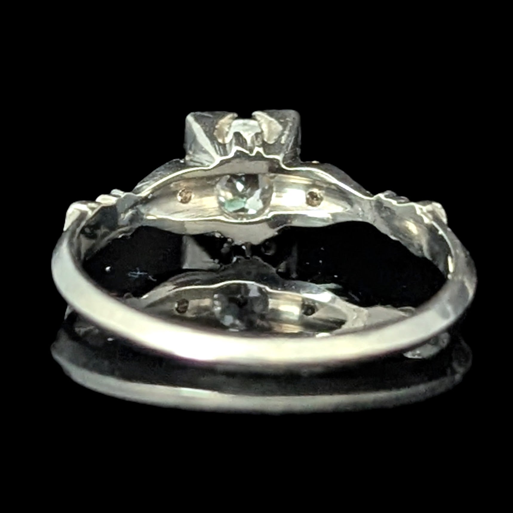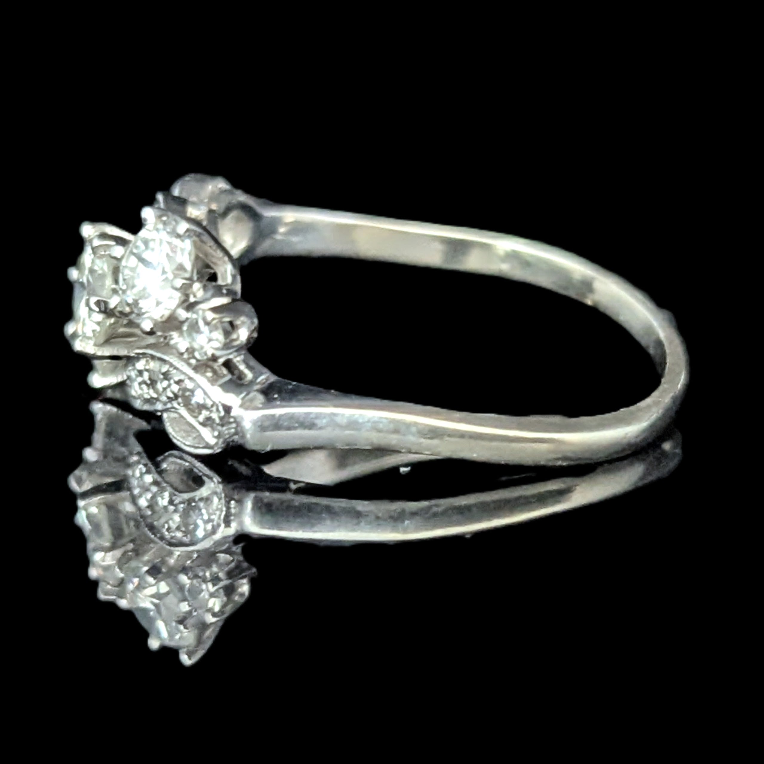 Linmere - Vintage Diamonds White Gold Floral Ring c.1950s