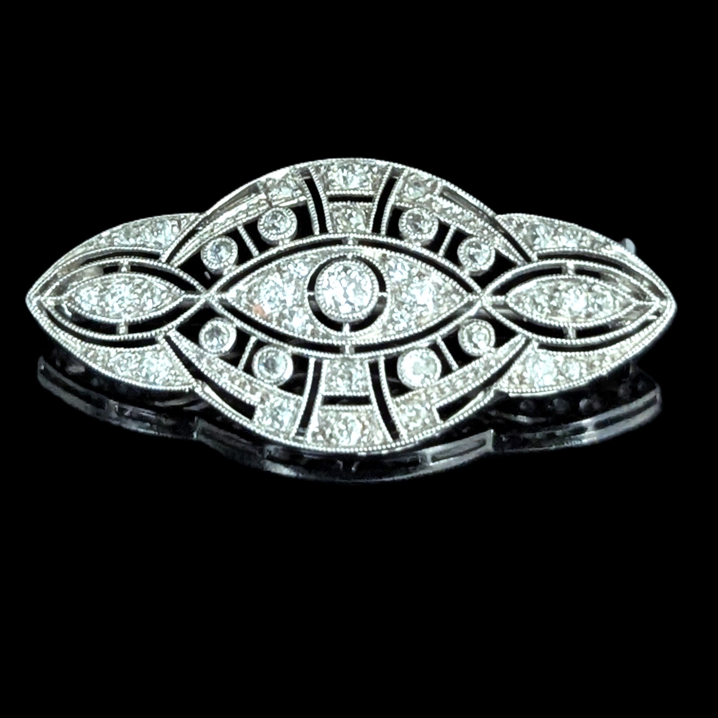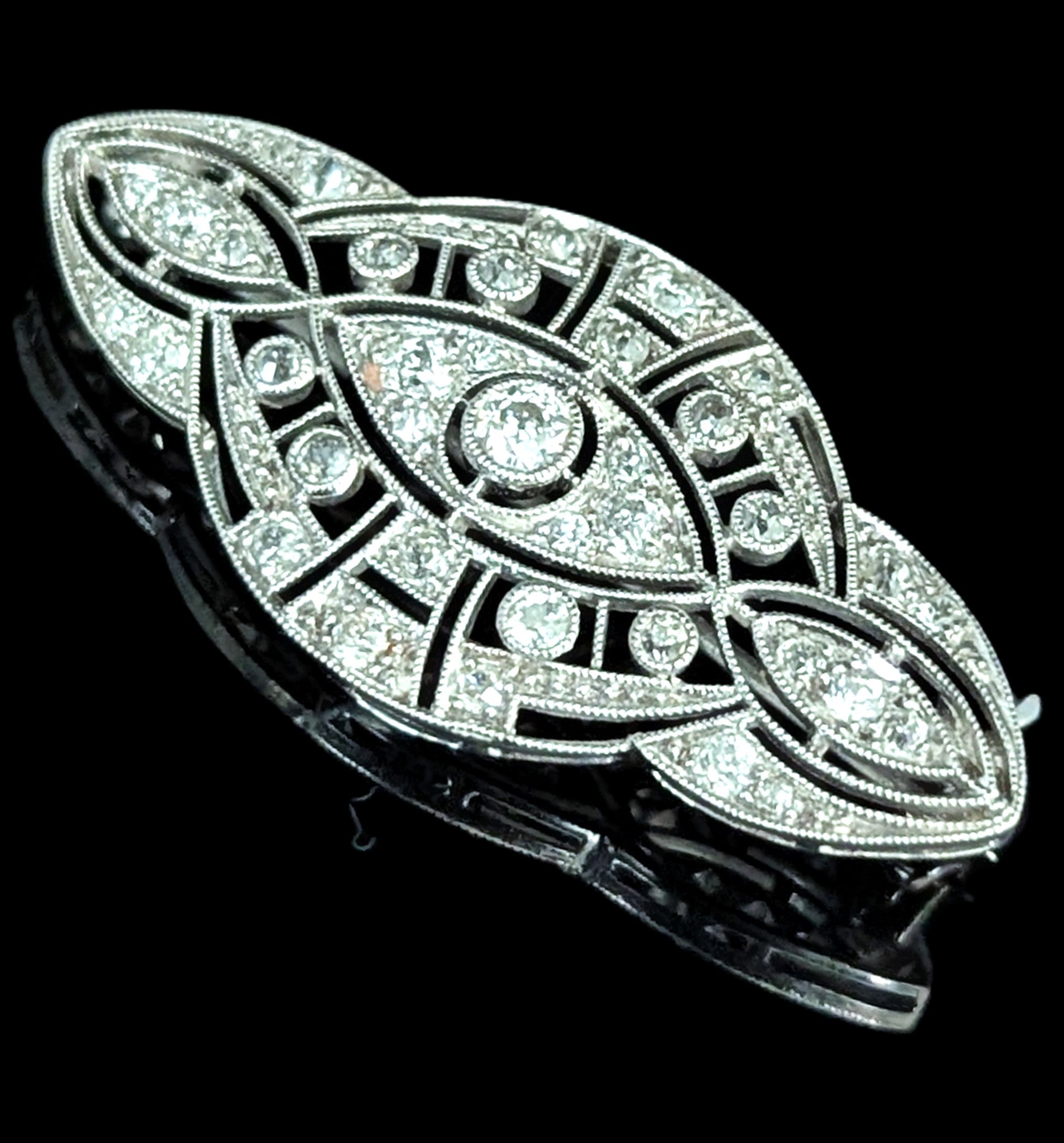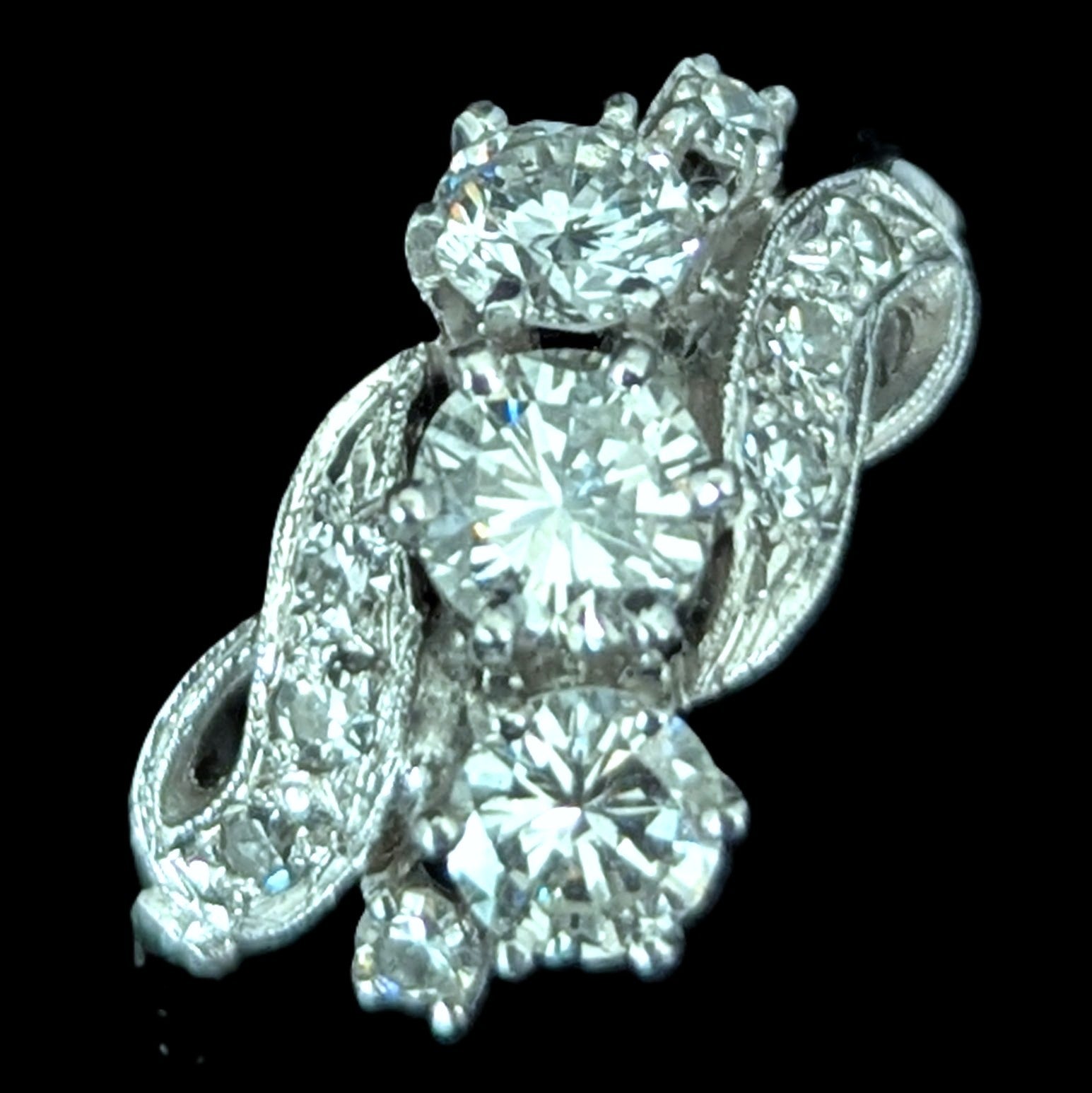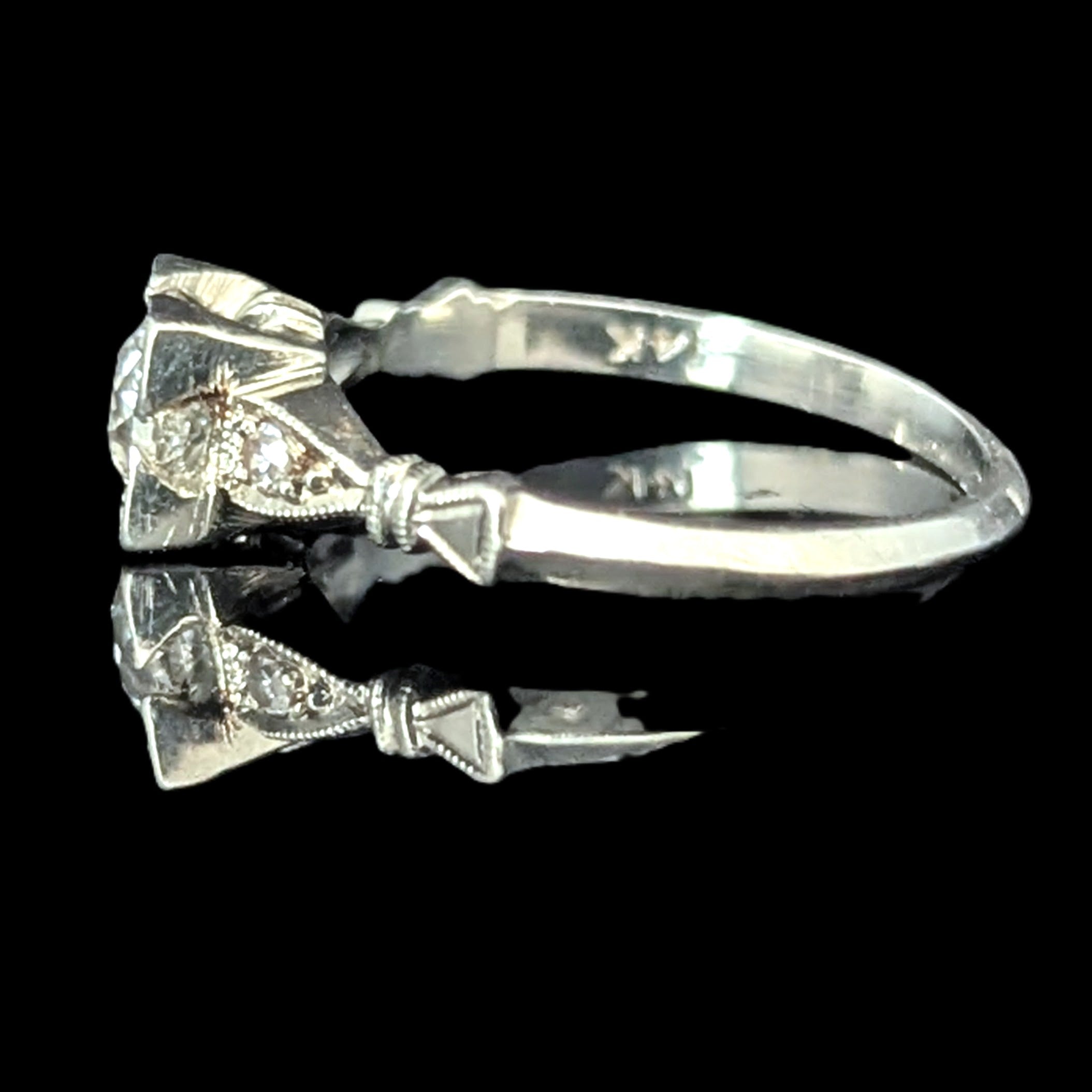 Linmere - Vintage Diamonds White Gold Floral Ring c.1950s